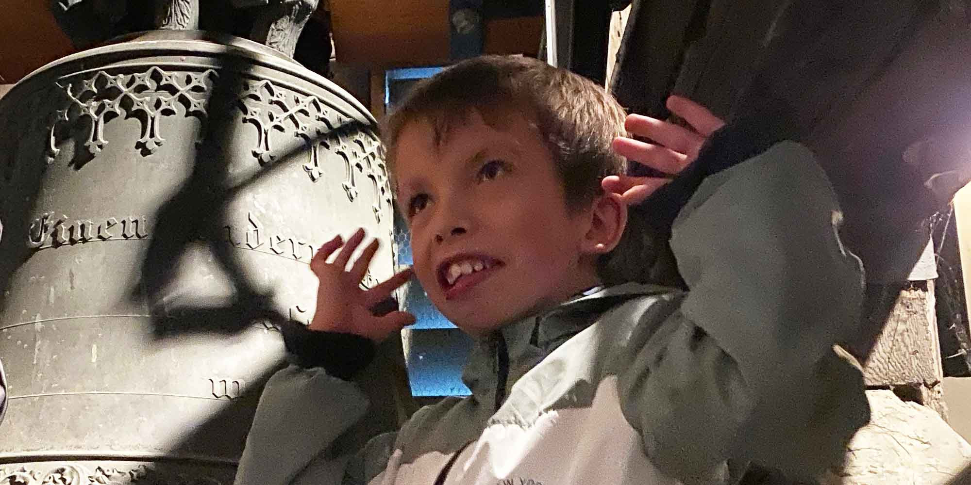 Quelques heures plus tard, cela a été le point culminant de la journée de Julien – littéralement. En suivant un escalier jusqu’à la galerie, puis un autre en colimaçon, le garçon est monté tout en haut d’une des tours massives du Grossmünster. À 19 heures précises, c’était le grand moment des cloches du samedi soir. Pendant un quart d’heure, comme hypnotisé, Julien s’est tenu à une longueur de bras des grosses cloches et s’est abandonné au magnifique son, plus fort que le tonnerre.
